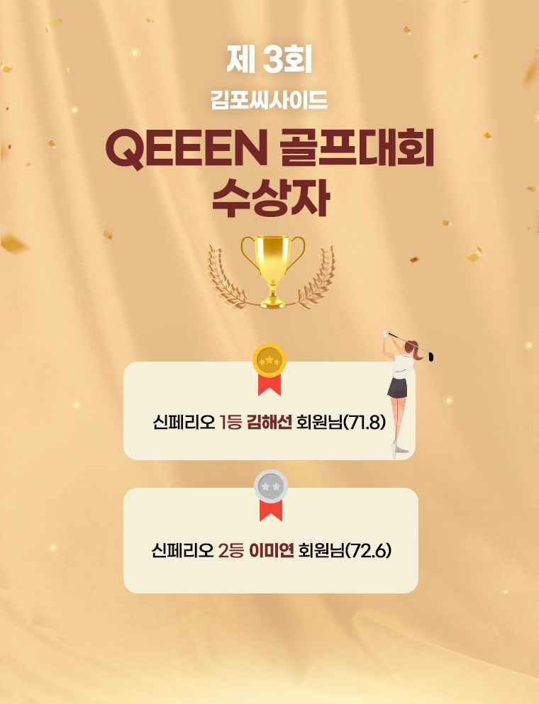Home 정보마당 명예의 전당 명예의 전당 제목 제 3회 김포 QUEEN 골프대회 수상자 안내 작성자 관리자 작성일 2025.08.19 조회 134 다음 글 제 4회 김포 QUEEN 골프대회 수상자 안내 이전 글 제 2회 김포 QUEEN 골프대회 수상자 안내 목록으로