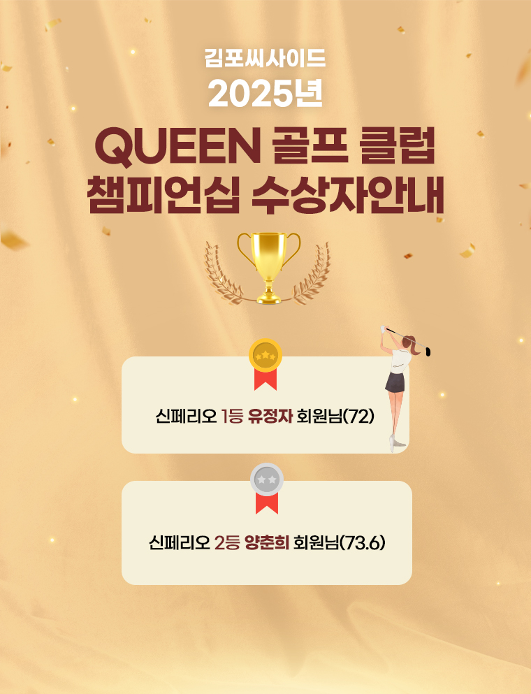 Home 정보마당 명예의 전당 명예의 전당 제목 2025년 퀸 골프 클럽 챔피언십 수상자안내 작성자 관리자 작성일 2025.12.10 조회 78 다음 글 다음글이 없습니다. 이전 글 제 16회 김포 QUEEN 골프대회 수상자 안내 목록으로