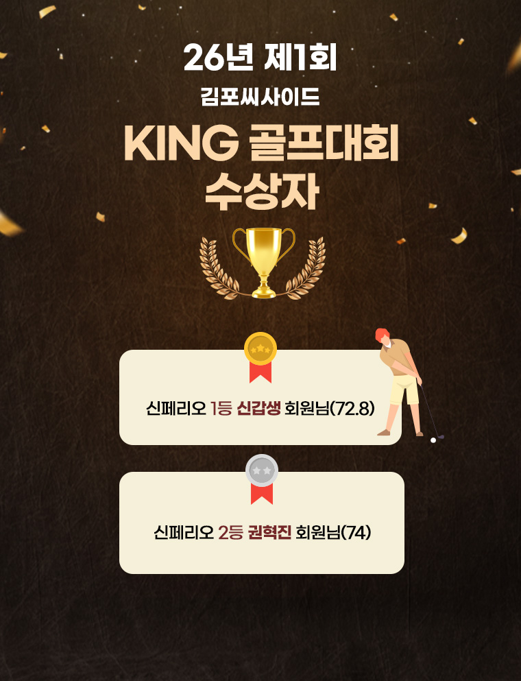 Home 정보마당 명예의 전당 명예의 전당 제목 26년 제1회 King 골프대회 수상자 안내 작성자 관리자 작성일 2026.03.10 조회 74 다음 글 26년 제1회 Queen 골프대회 수상자 안내 이전 글 2025년 퀸 골프 클럽 챔피언십 수상자안내 목록으로