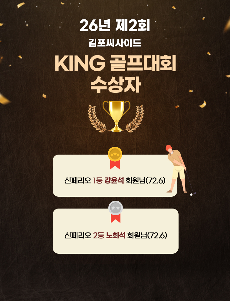 Home 정보마당 명예의 전당 명예의 전당 제목 26년 제2회 King 골프대회 수상자 안내 작성자 관리자 작성일 2026.03.24 조회 47 다음 글 다음글이 없습니다. 이전 글 26년 제1회 Queen 골프대회 수상자 안내 목록으로