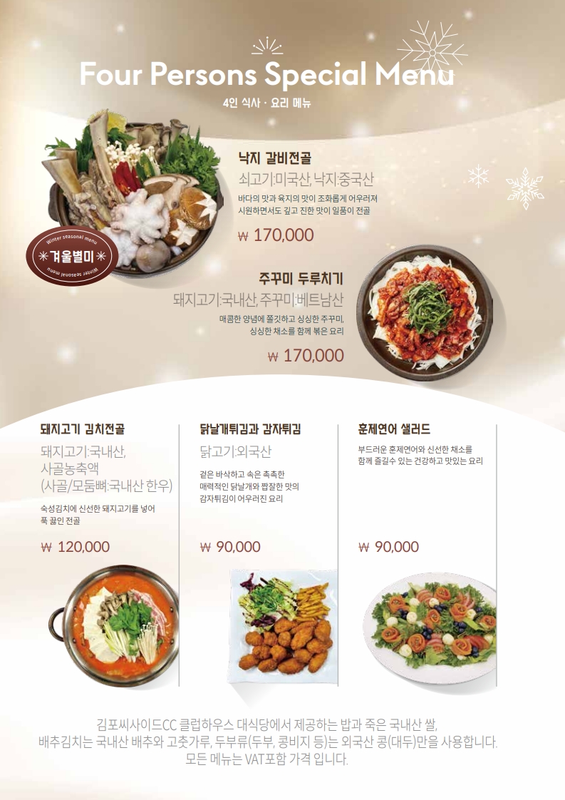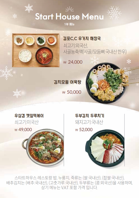 식 음 대식당 메뉴판 스타트 메뉴판 스타트 - 1부 스타트 - 2부 스타트 Beverage 레스토랑 조식 - 1人 레스토랑 중식 - 1人 레스토랑 중식 - 1人 레스토랑 전골류 - 4人 레스토랑 요리류 - 4人 << < 1 2 > >>
