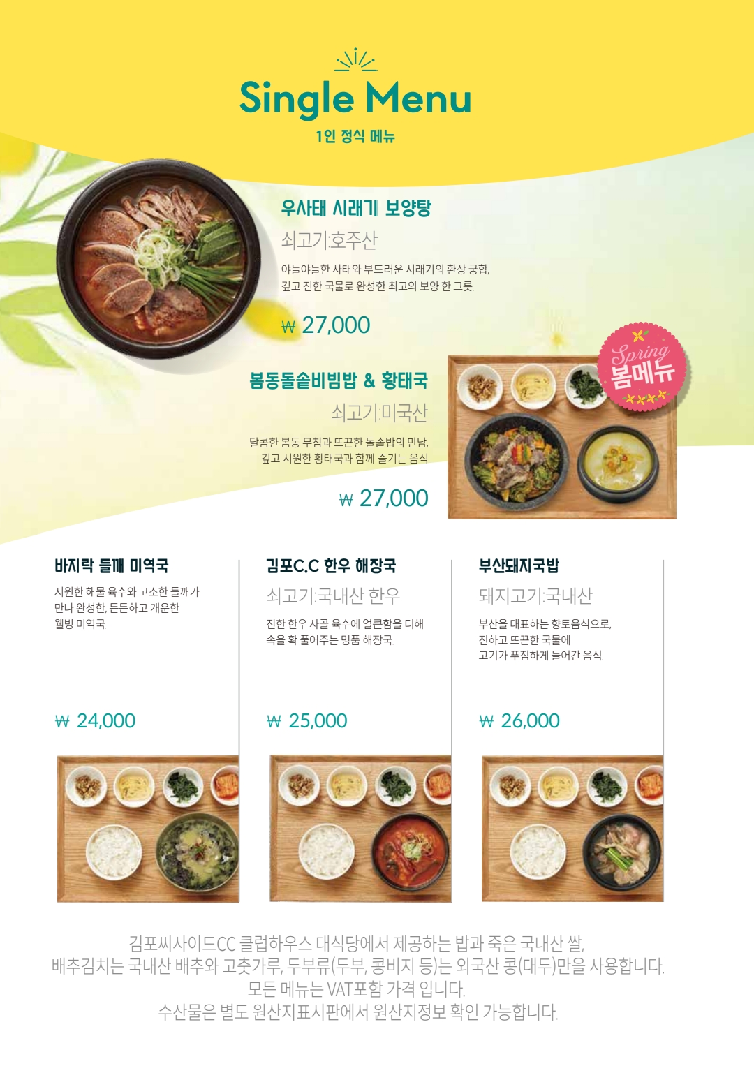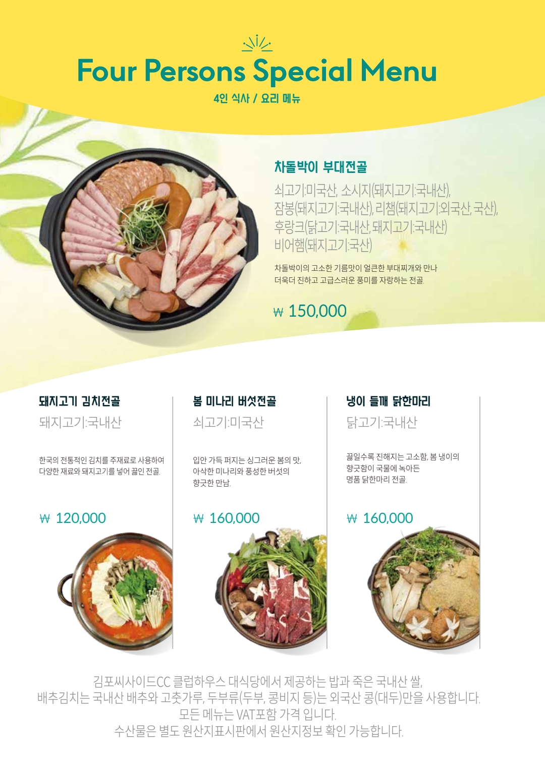 식 음 대식당 메뉴판 스타트 메뉴판 스타트 - 1부 스타트 - 2부 스타트 Beverage 레스토랑 조식 - 1人 레스토랑 중식 - 1人 레스토랑 중식 - 1人 레스토랑 전골류 - 4人 레스토랑 전골류 - 4人 << < 1 2 > >>